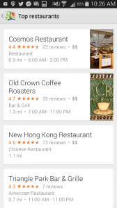How dare I insinuate that quality is a lessor signal? Actually, quality is always important. But in search it is weighed against context and relevance. This is why “Top restaurants”, a Google Explore feature, will show a 4.4-star lunch restaurant with 23 total reviews above a 4.7-star coffee shop with 35 reviews: the quality is offset by the fact that I only go to coffee shops for their wifi, and Google and Foursquare know it.
